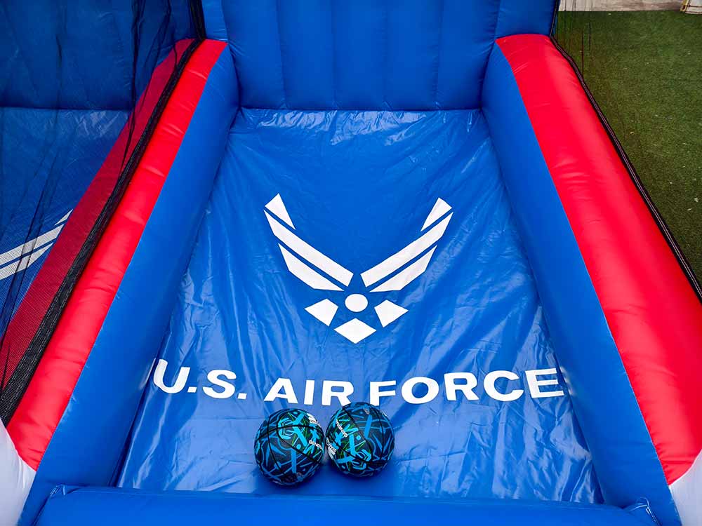 If you are looking for a popular inflatable to add to your rental inventory this 2 player inflatable basketball game is a big hit. Also popular at camps, schools, and with company team building events. We can fully customize it with your color choices and even UV print your logo on it for no additional charge. Comes with real basketball hoops with netting and an acrylic backboard. This allows you to use real basketballs.