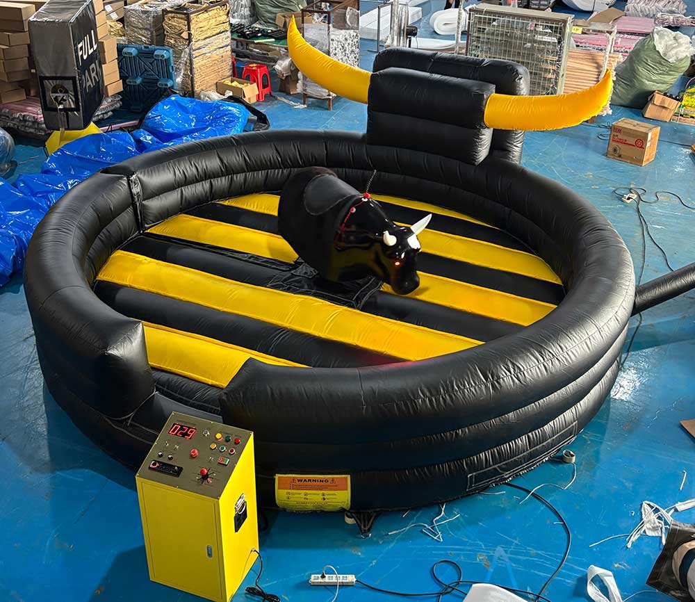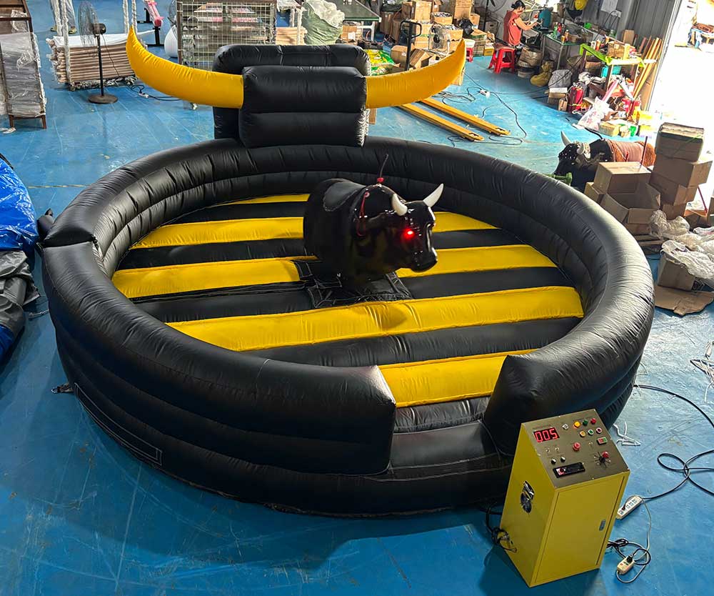 Our Inflatable Mechanical Bull is designed with safety and entertainment in mind. The bull is constructed of heavy-duty, commercial-grade PVC, ensuring that it can withstand even the wildest rides. Its inflatable surrounding area serves as a soft cushion to safely catch riders as they fall, reducing the risk of injury.