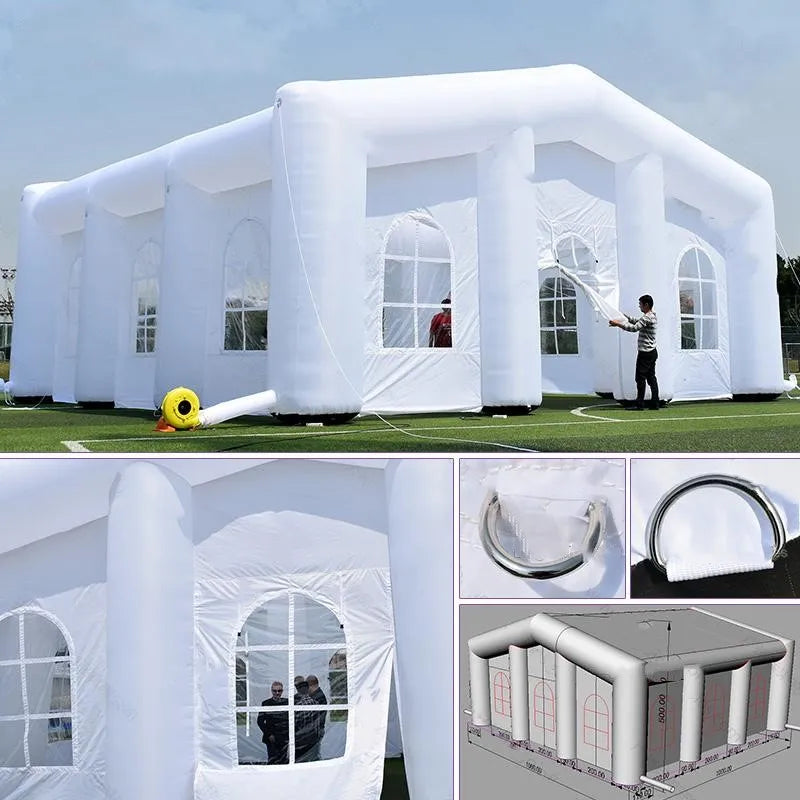 Our large 65ft inflatable tents are extremely popular at weddings, company events, concerts, food events and even outdoor eating areas for restaurants. The large inflatable tent is very easy to put up and take down. It fully inflates in under 10 minutes with the powerful air blower.